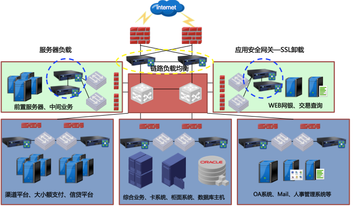 金融行业数据大集中促使服务器集群大规模应用,业务交付过程中可能导致服务器负载分配不均,部分服务器资源未得到充分利用,同时SSL加解密会导致服务器处理性能下降。